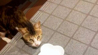 思わぬところで、持ち前の食いしん坊を披露していたのが、こちらの三毛猫さん。