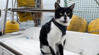 うに丸くんには、黒猫のさくくんというとっても仲良しな仲間猫がいます。