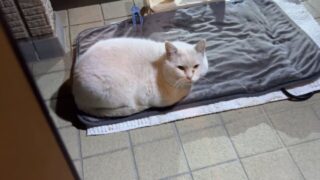 脱衣所も好んでおり、いつも飼い主さんを出待ちしたり、軽く閉めたお風呂の扉に肉球を押し付けて開け、蓋の上でくついだりと自由奔放。