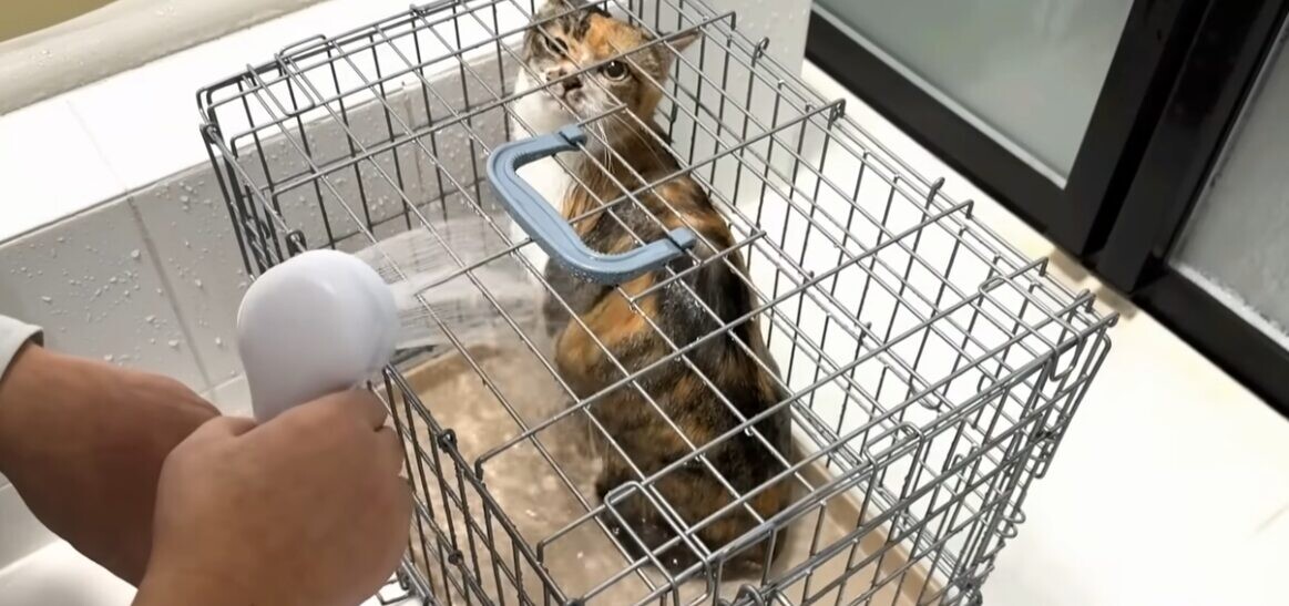 初めて繁殖場以外の場所へ出てきた猫ちゃんたち。表情や状態は様々で、中には被毛が固まってしまっている子も…。シャンプーをすると、お湯が土色になるほど体が汚れていました。