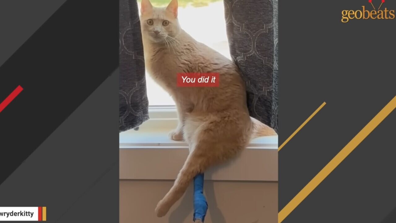 猫は、機能する前足でなんでもこなします。ベッドやソファ、窓枠にだってよじ登れます。「やったわね!」とリサさんが声をかけると、とっても得意そう。