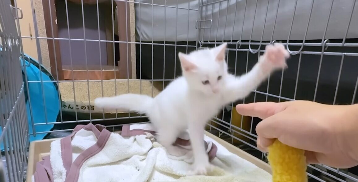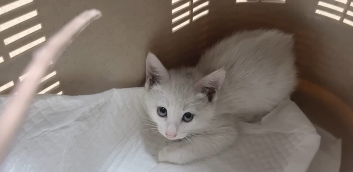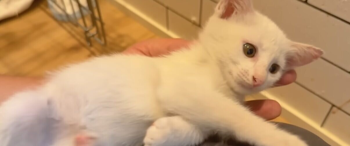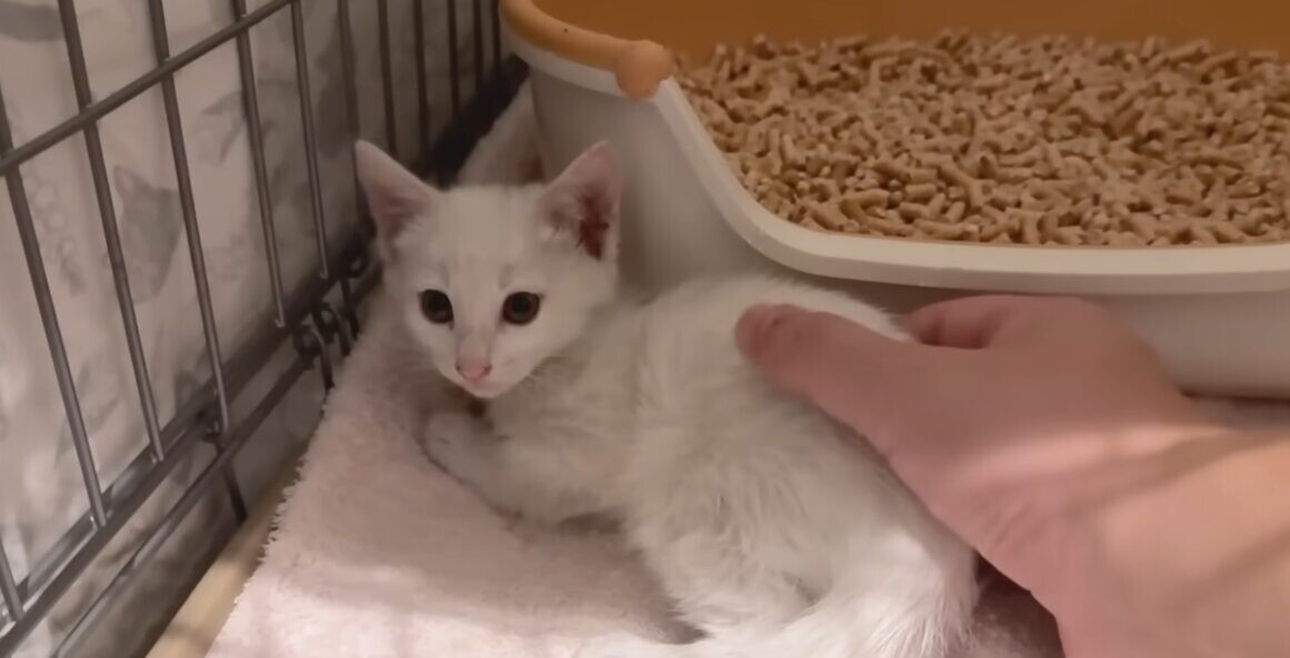 里親募集中の猫ちゃんを預かり、育てている投稿者さん。この日やってきたのは、生後1ヶ月半の白猫ちゃんです。猫ちゃんは警戒心が強いようで、話しかけると「シャー」と威嚇。しかし、お迎えから3分後に態度が急変し、投稿者さんは驚かされました。
