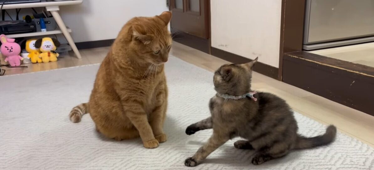 しかし、まだひとつ問題が…。それは先住猫・ろいくんとの対面です。初対面時は緊張感が漂う場面もありましたが、一緒に過ごす時間が長くなると、嬉しい変化が。