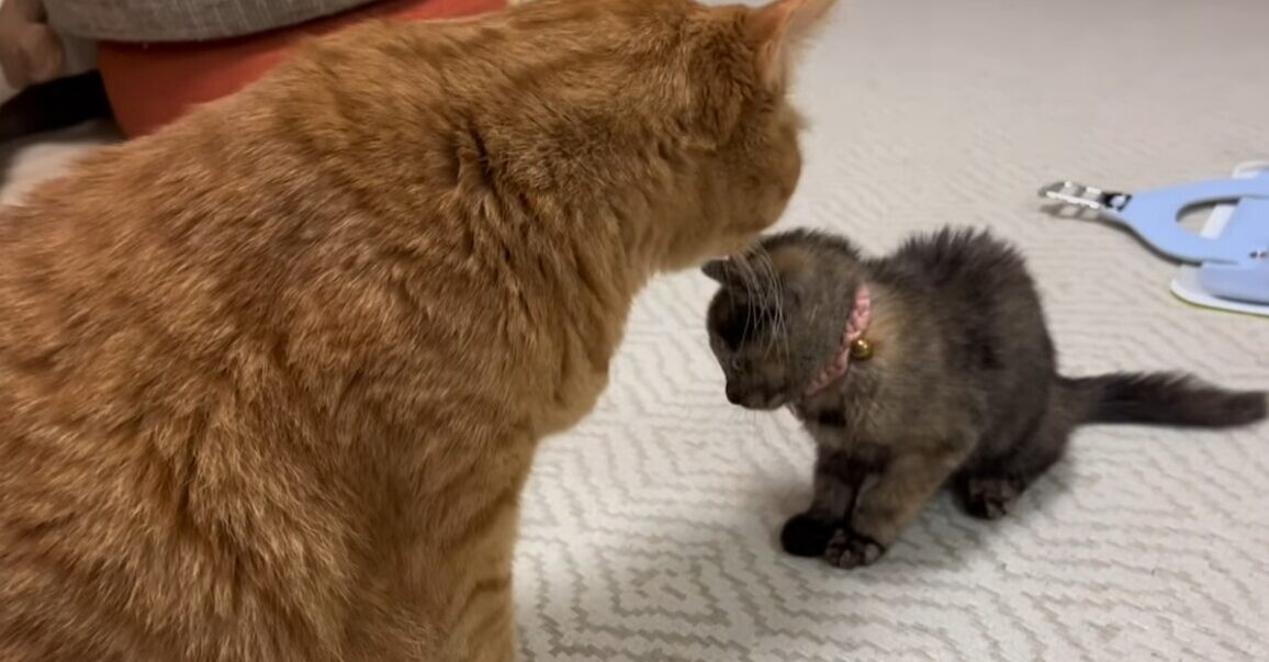 くるみちゃんは定期的な通院や日々のリハビリが必要ですが、自力でご飯を見つけて食べられるようにもなったそう。体が大きくなると、ろいくんに優しい猫パンチをし、じゃれ合おうとすることもありました。