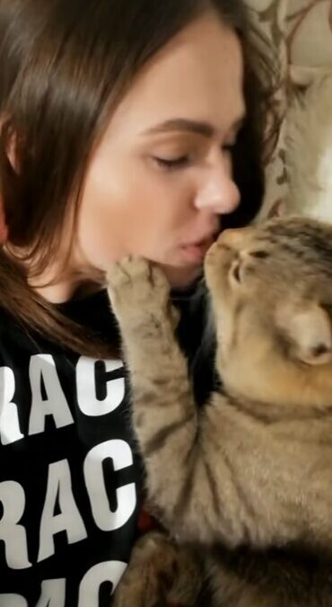 愛猫と相思相愛な関係を築けていると感じた時、飼い主は嬉しくなるものです。こちらの飼い主さんは愛猫と愛あるキスを交わし合い、幸せな日々を過ごしています。