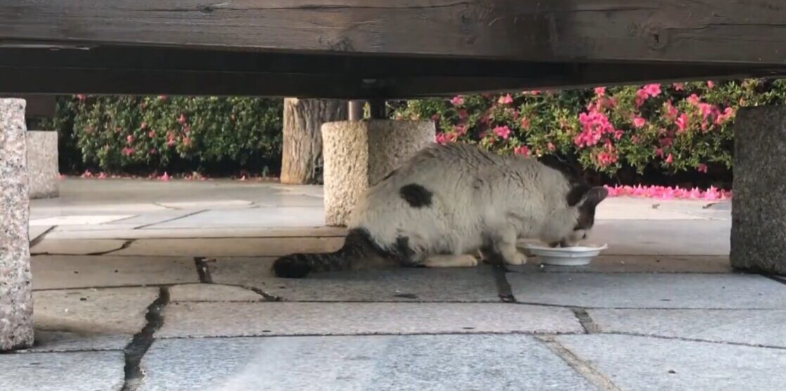 地域猫のモモちゃんと出会ったのは、2019年頃のこと。外の世界で生きるのは、とても過酷です。モモちゃんは毛ヅヤが悪く、口内炎も患っていたよう。ご飯を食べるのに、とても苦労していました。