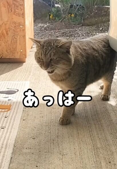 野良猫さんは声質だけでなく、鳴き方も個性的です。「にゃー」ではなく、「あっはー」や「わっふ」という独特すぎる言葉を発し、コミュニケーションをとろうとしてくれました。