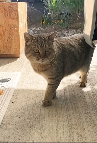 投稿者さん宅の庭に突然現れた、野良猫さん。丸々とした見た目や落ち着きある態度…。どことなく、ボス猫らしい貫禄が感じられます。