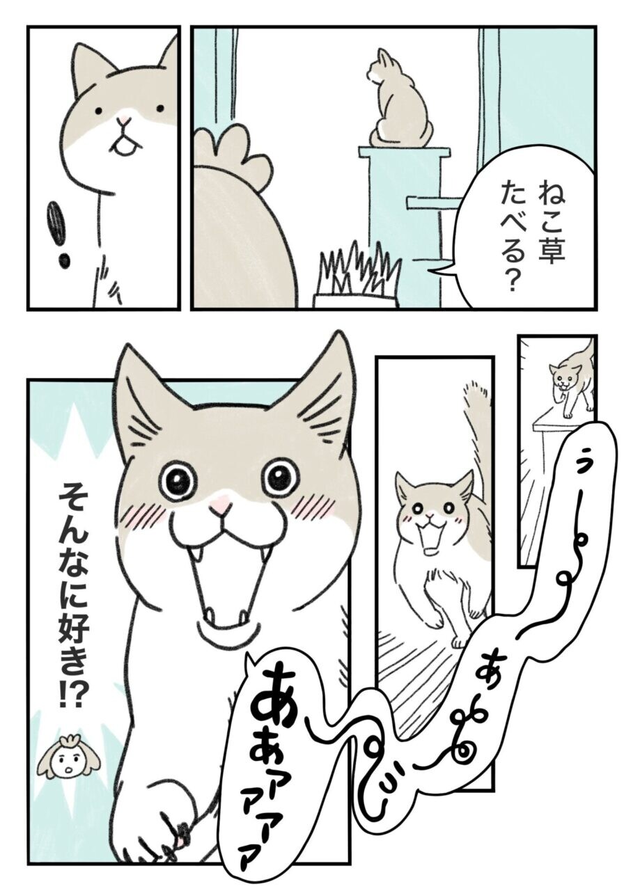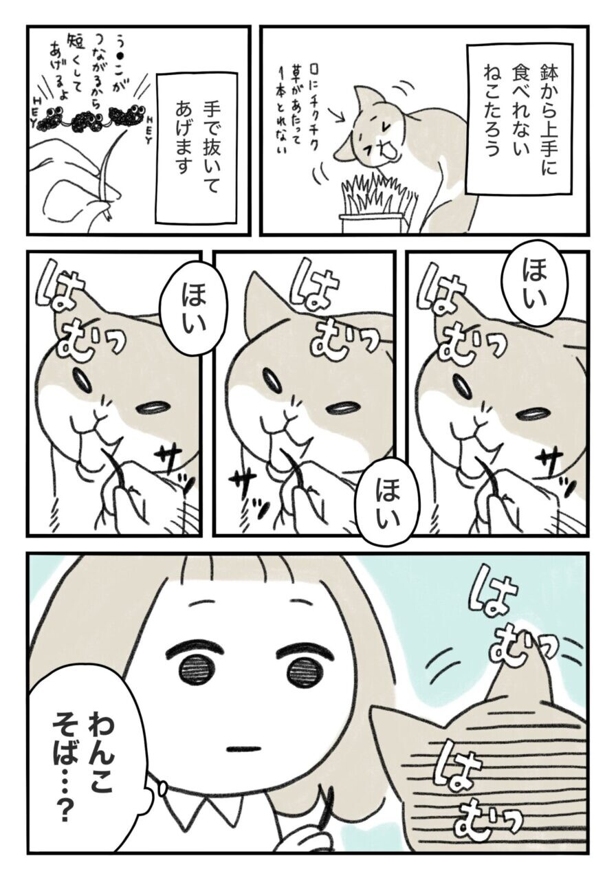 また、猫草を愛して止まず、わんこそばにように食べるねこたろうくんの愛くるしさを描いたエピソードには、猫飼いさんから大きな反響が寄せられたそうです。