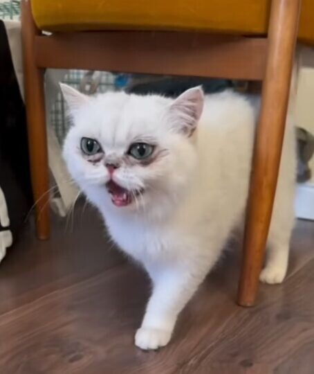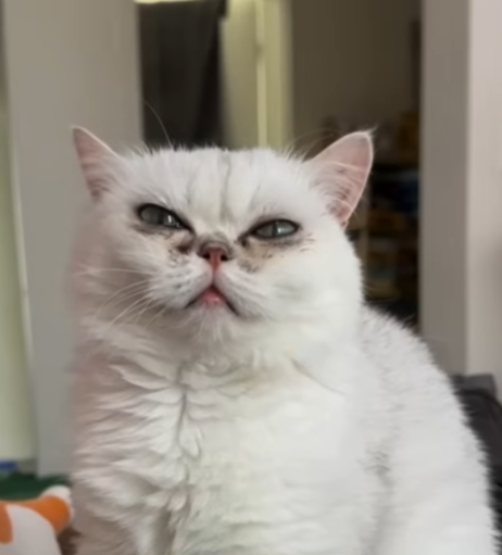 お迎え後には動物病院へ。適切な治療を継続しました。病院では、猫ちゃんがエキゾチックショートヘアという猫種であることも判明。目の周りにある大きな黒い汚れは、感染症による影響でした。