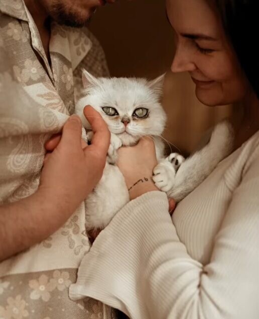 飼い主さんは、そんな特徴を「アイライナーがにじんでいるみたい」とポジティブに受け止めたそう。猫ちゃんは飼い主さんの婚約者さんとも絆を深め、ゆっくりと家族の一員になっていきました。
