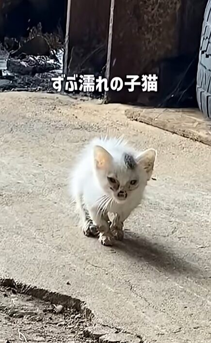 猫アレルギーの撮影者さんはある雨の日、ずぶ濡れの子猫に出会いました。ボロボロの状態なのに、助けを求めるかのように必死に鳴く子猫。そんな姿に胸を打たれた撮影者さんは保護を決意します。