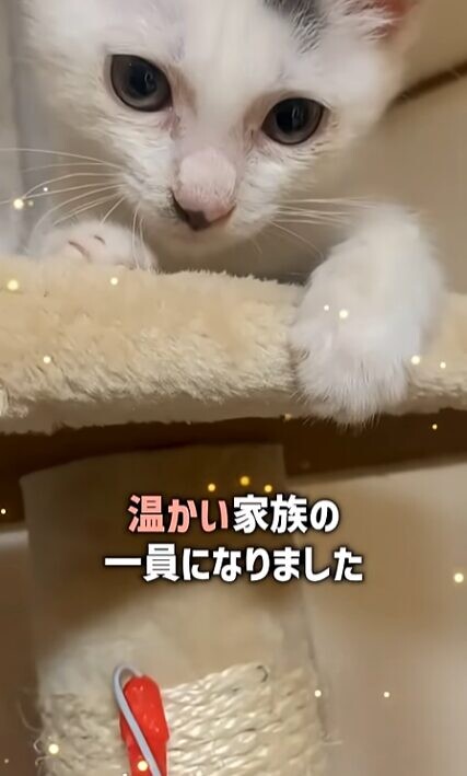 家族から愛あるケアを受ける中で、ボロボロの状態だったモモちゃんはすっかり美猫に。綺麗になった瞳をキラキラ輝かせて楽しい日々を過ごしています。
