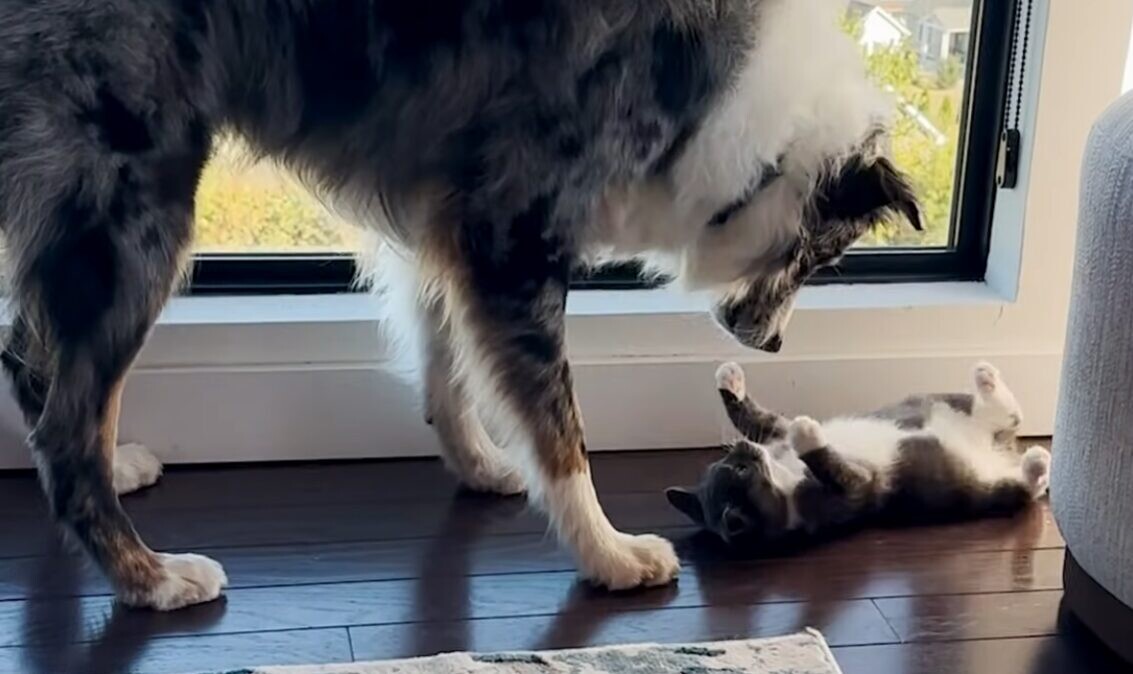 先住犬は新しくやってきた家族に興味津々。2匹はすぐに打ち解け、じゃれ合いをする仲に。仲睦まじい姿を、女性も微笑ましく思っていました。