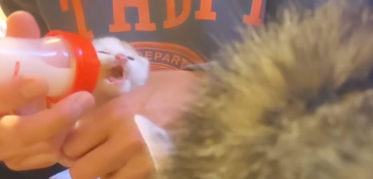 猫用ミルクをあげると、ミイコちゃんはゴクゴクと飲んで栄養補給!その生命力あふれる姿を見て、投稿者さんの心にあった傷は癒されていきます。