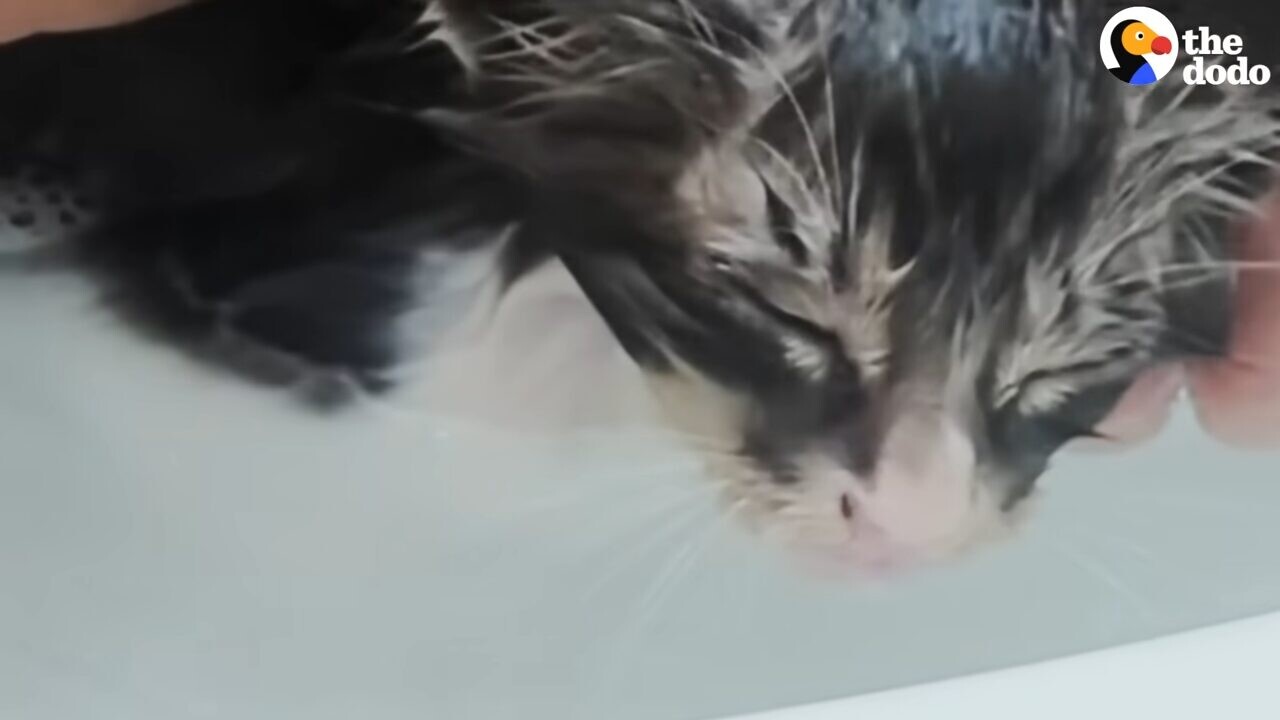 その一時預かりの里親さんが、チェスカさんだったのです。保護猫活動のプロであるチェスカさんは、慣れた手つきで子猫を受け入れ、自宅でお風呂にいれてあげました。子猫はすっかりくつろいで、ウトウト…。「たまらなくかわいいわ」