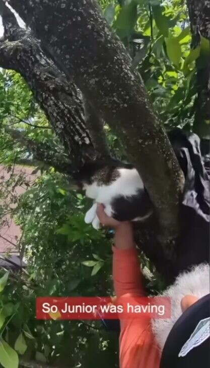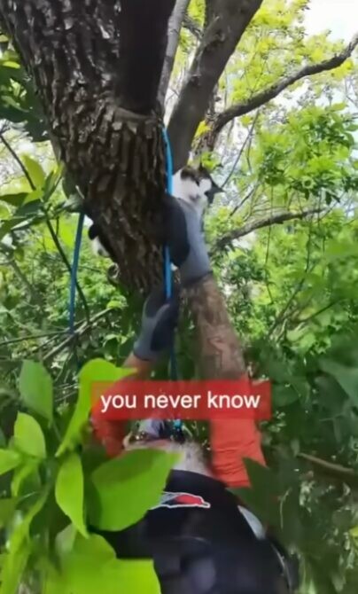 男性は、木から降りられなくなった猫ちゃんをこれまでに600~700匹も救助してきたスペシャリスト。猫ちゃんはなんと、数日間も木の上で身動きが取れなかったそうです。