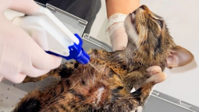 小さな命を救いたい――。そう思い、男性はすぐさま子猫たちを保護して動物病院へ。子猫たちの体にはノミがたくさん。どれほど、過酷な環境で生きてきたのかが伺えます。