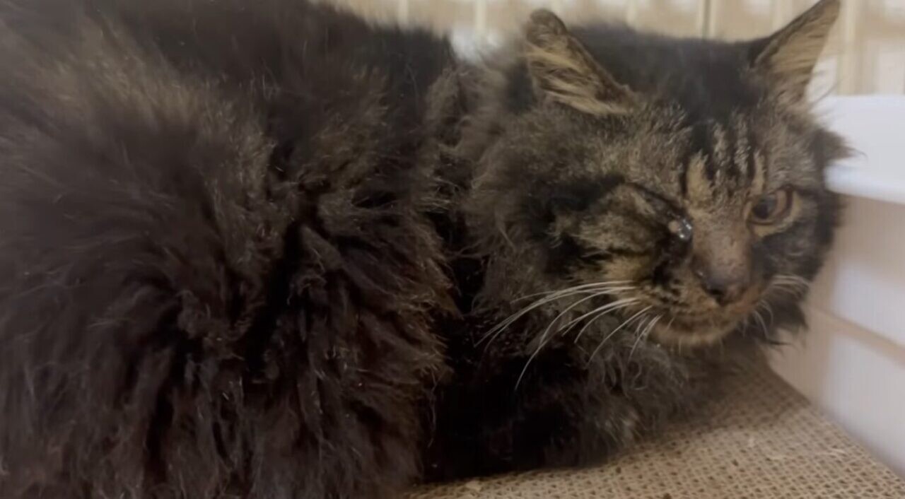 その努力が実り、ボランティアさんはついに猫ちゃんを保護することに成功! 猫ちゃんは猫風邪を患っているのか、目から涙が…。ボランティアさんは抗生剤入りのおやつを毎日与え、治療に励みました。