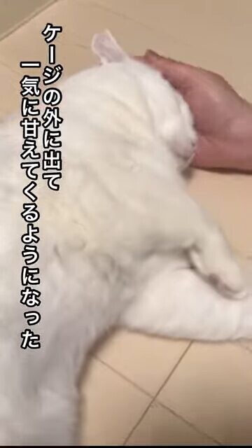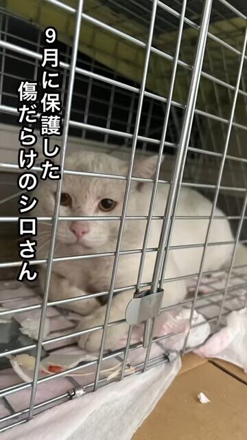 2025年9月に傷だらけの白猫・シロさんを保護した投稿者さん。シロさんは当初、警戒心が強く、触ることすらできませんでした。しかし、愛情を注ぎ続けた結果、お迎えから3ヶ月後に嬉しい変化が起きました。