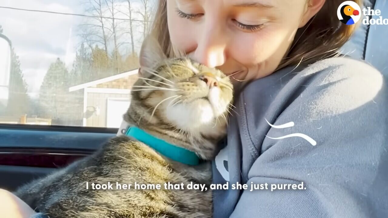 ブリタニーさんがシェルターでMKを抱っこしたとき、MKはしっかりブリタニーさんにくっつき、離れようとしませんでした。ブリタニーさんは即決。「この子をひきとるわ」。MKはすぐにゴロゴロと喉を鳴らし、ブリタニーさんの行くところどこへでも付いていくようになったのです。