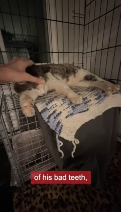 路上で何年も生きてきた猫ちゃんの体には、たくさんの傷跡が…。歯の状態も悪く、痛みから食事を食べられていませんでした。