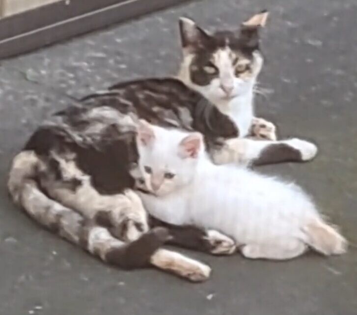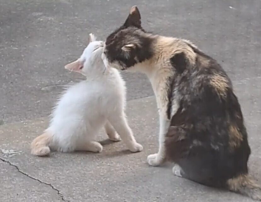 子猫は産みの母親を知りませんが、“育ての母”である三毛猫ちゃんの愛に包まれ、外の世界を生き抜くことができました。