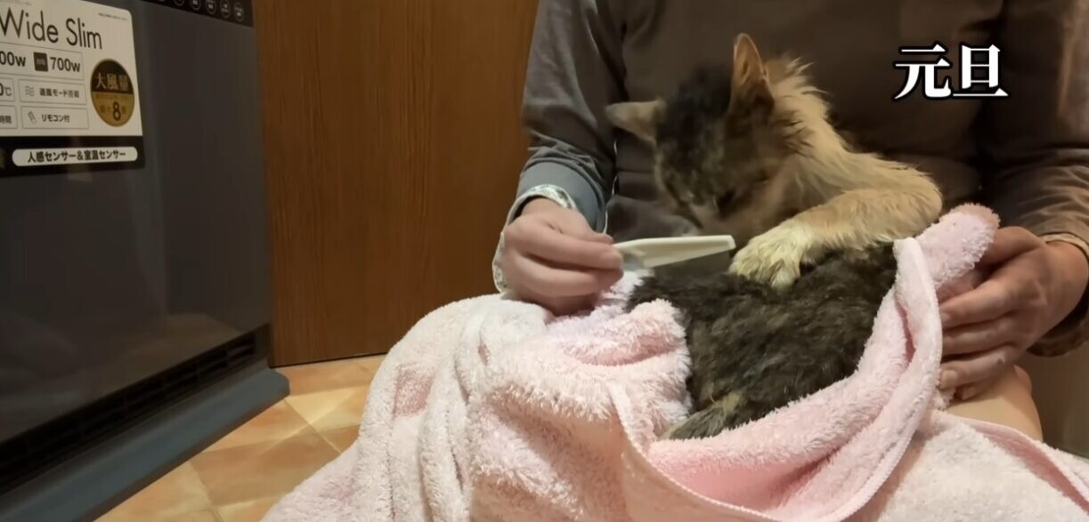 猫は優しい生き物。時には、他猫を気にかけることもあります。2025年12月26日、投稿者さんは野良猫さんが連れてきた1匹の猫ちゃんを保護しました。猫ちゃんの体は糞尿まみれ。投稿者さんは本来の姿を取り戻してほしいと、献身的にケアしました。