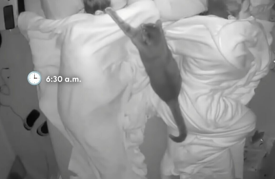 しかし、猫ちゃんの行動はエスカレート。深夜2時頃には飼い主さんらの間に入り、布団の中へ。そのまま大人しく寝てくれるかと思いきや、1時間後には布団の外へ。