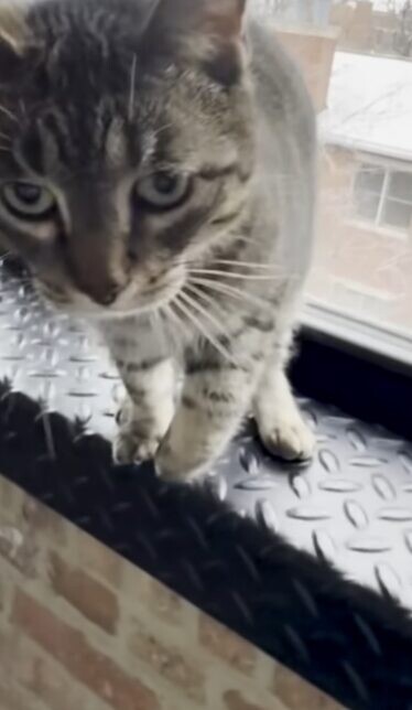 実はこの行動、構ってもらうための知的な演技でした。飼い主さんの気を惹くことに成功すると、猫ちゃんは窓辺から普通にジャンプ。