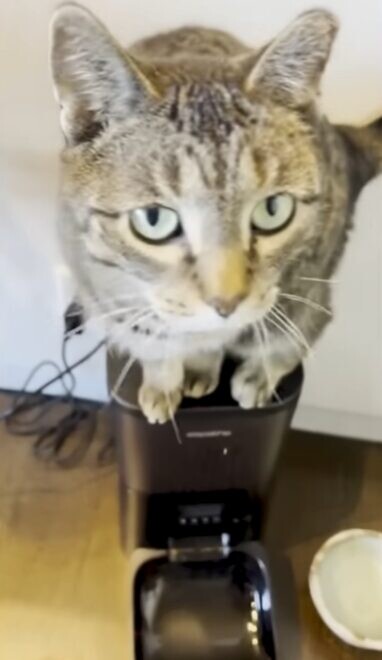 いつも通り歩き始め、自動給餌器の上に乗ってご飯をねだるなど、元気な姿を見せ始めました。