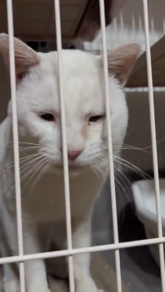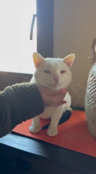 コンビニで2日間も助けを求めた白猫――ようやく届いた“お腹が空いた”のSOS