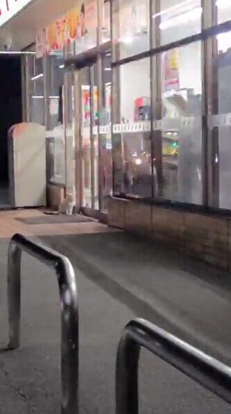 猫ちゃんはコンビニのドアが開くたび、人間の動きを観察。ご飯を貰えそうな人を探しているような素振りを見せます。