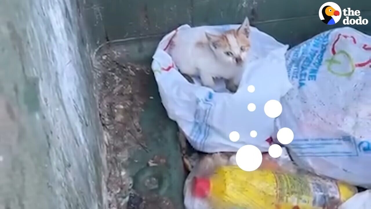 まるで「助けて!」と言っているような緊迫した鳴き方。アレクサンドラさんの目は道端に設置されたゴミ収集箱に引き寄せられました。「ここかしら」。悪い予感は的中するもの。人間の大人が入れるくらい大きなゴミ箱の中に、やせ細った子猫が置き去りにされていたのです。「このエリアの猫は、私たちがすべて不妊手術を済ませている。こんな小さな子がここにいるはずがない。誰かが捨てたんだわ」。