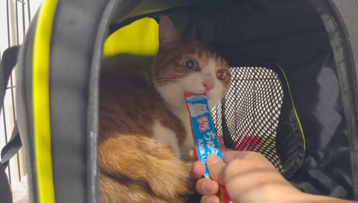 人の手から猫用おやつをペロペロと食べる姿も見られ、投稿者さんは一安心。お迎え翌日には、ご飯もモリモリ食べてくれました。