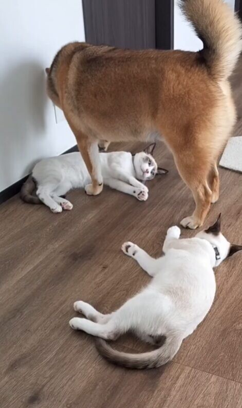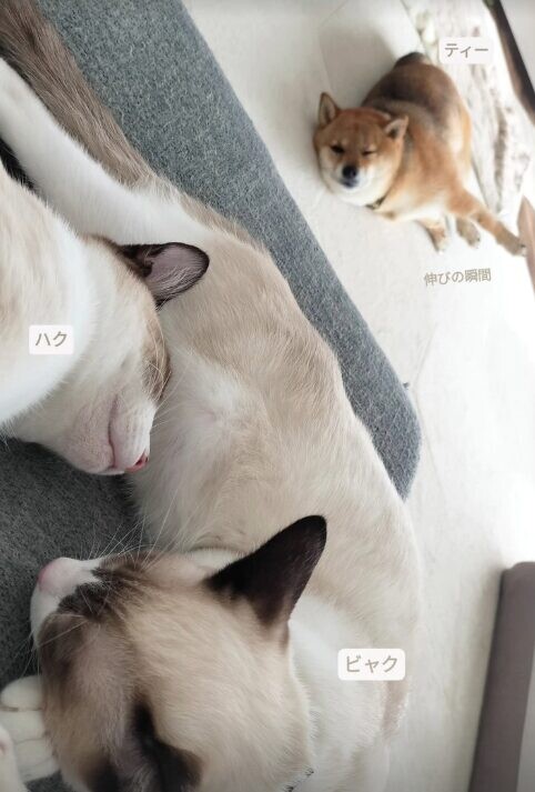 なお、最近はティーくんのほうが猫たちにちょっかいを出し、軽くあしらわれることもあるのだとか。3匹の関係性は今もなお、変化し続けています。