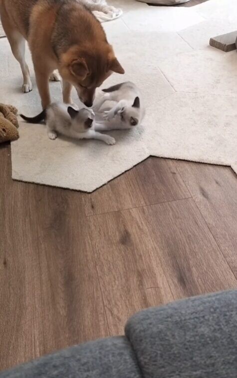ただ、子猫たちが小さくてか弱い存在だとは理解してくれていたよう。距離を保ちながら、穏やかに様子を見守る日々が続きました。