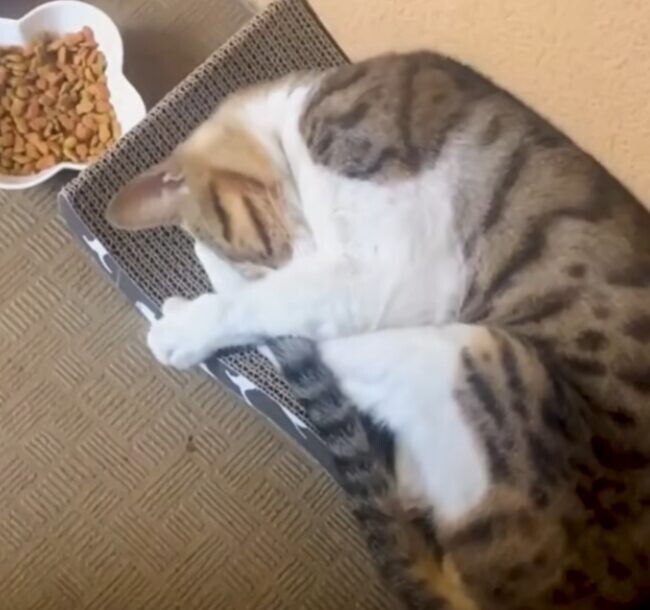 心優しい人たちの連携によって、命を紡ぐことができた猫ちゃん。よく遊び、よく眠り、これからも心豊かな日々を過ごしてね。