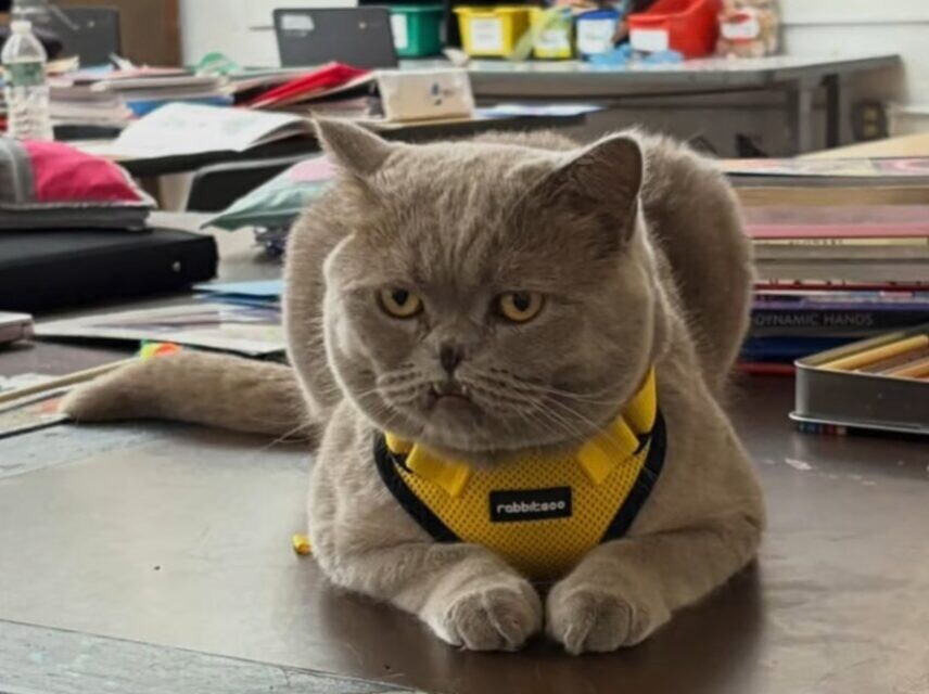 飼い主は、この学校に務める美術教師。猫ちゃんが学校で過ごすようになったきっかけは、校長先生が生徒へのご褒美として、この猫ちゃんを連れてくることを許可したことでした。
