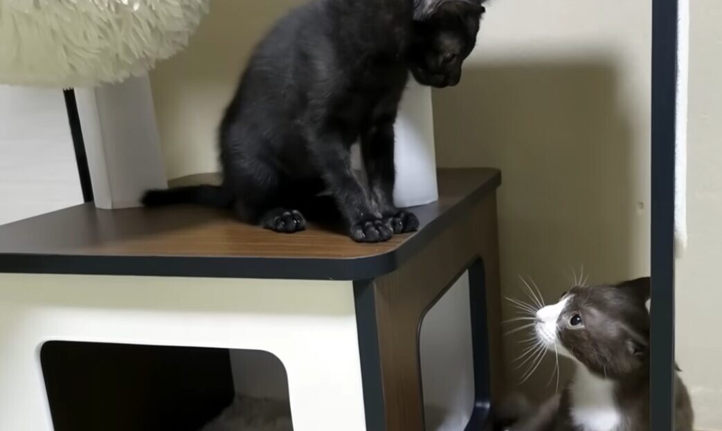 自宅では先住猫ちゃんと遊びながら、猫界のマナーを学んでいます。交流を深める中では、おもちゃを先住猫に譲る優しさを見せることもあるのだとか。