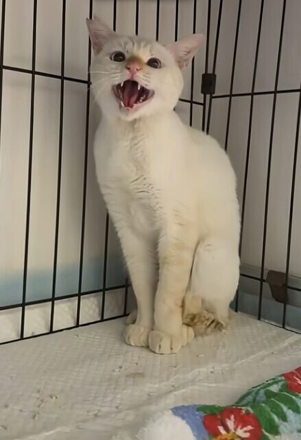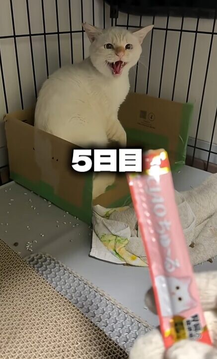 保護から2~3日目、ささかまくんは目を大きく見開いて、人間を威嚇。その後も、猫パンチを繰り出すなど、応戦的な態度を見せました。