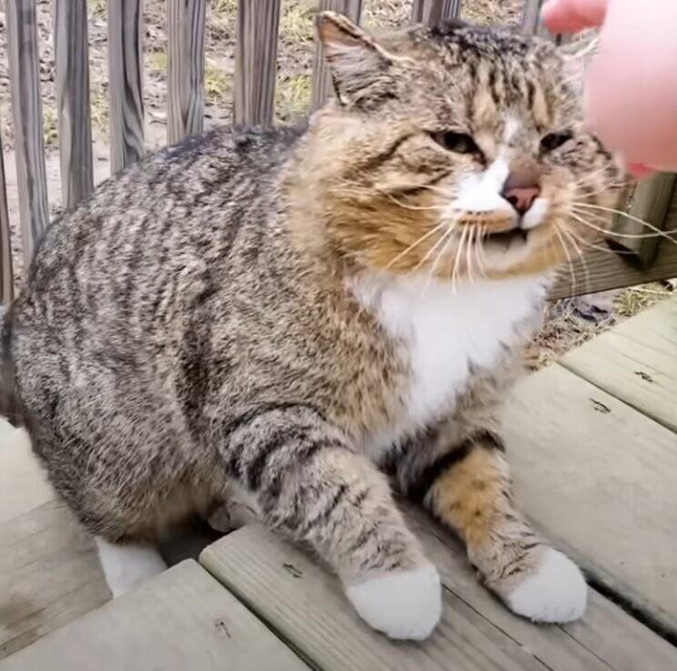 その努力は実り、7ヶ月後、猫ちゃんは触らせてくれるように。足元へすりよる姿も見られ、女性は大きな喜びを感じました。
