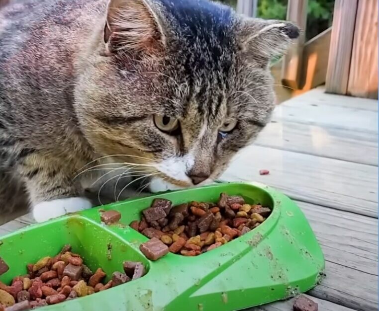 しかし、猫ちゃんを保護したいと思った女性は根気強くご飯をあげ、距離を縮めていきました。