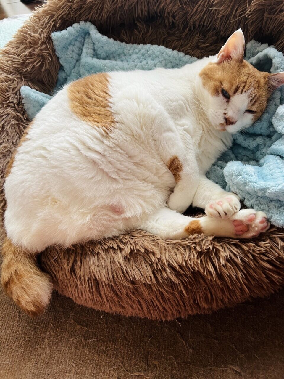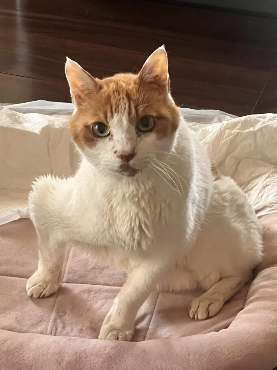 不安でいっぱいだった手術は無事、成功。術後は床にマットを敷くなど、環境を整備しました。特に心配だったのは、トイレ。藤井さんは、自力でできる様子を見守りつつ、低いトレーに変更。猫砂は、ペットシートに変えました。