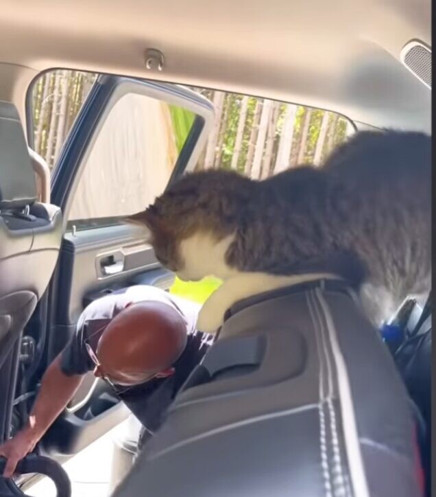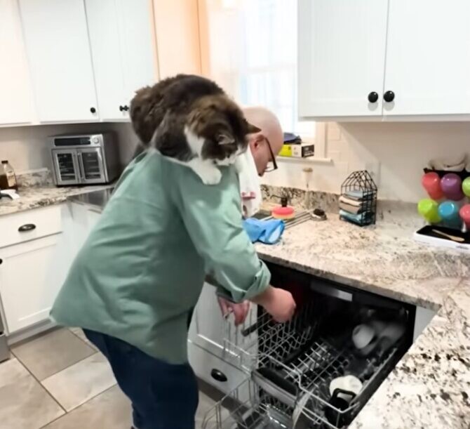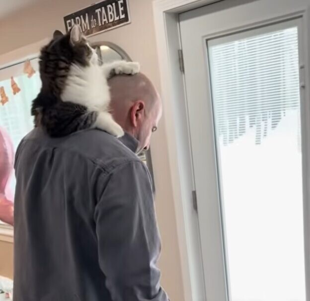 猫のレオくんには、大好きな日課があります。それはパパさんの肩に乗り、行動を観察すること。時にはパパさんの頭を叩くことも。かわいい愛猫の行動に、パパさんは心を奪われています。