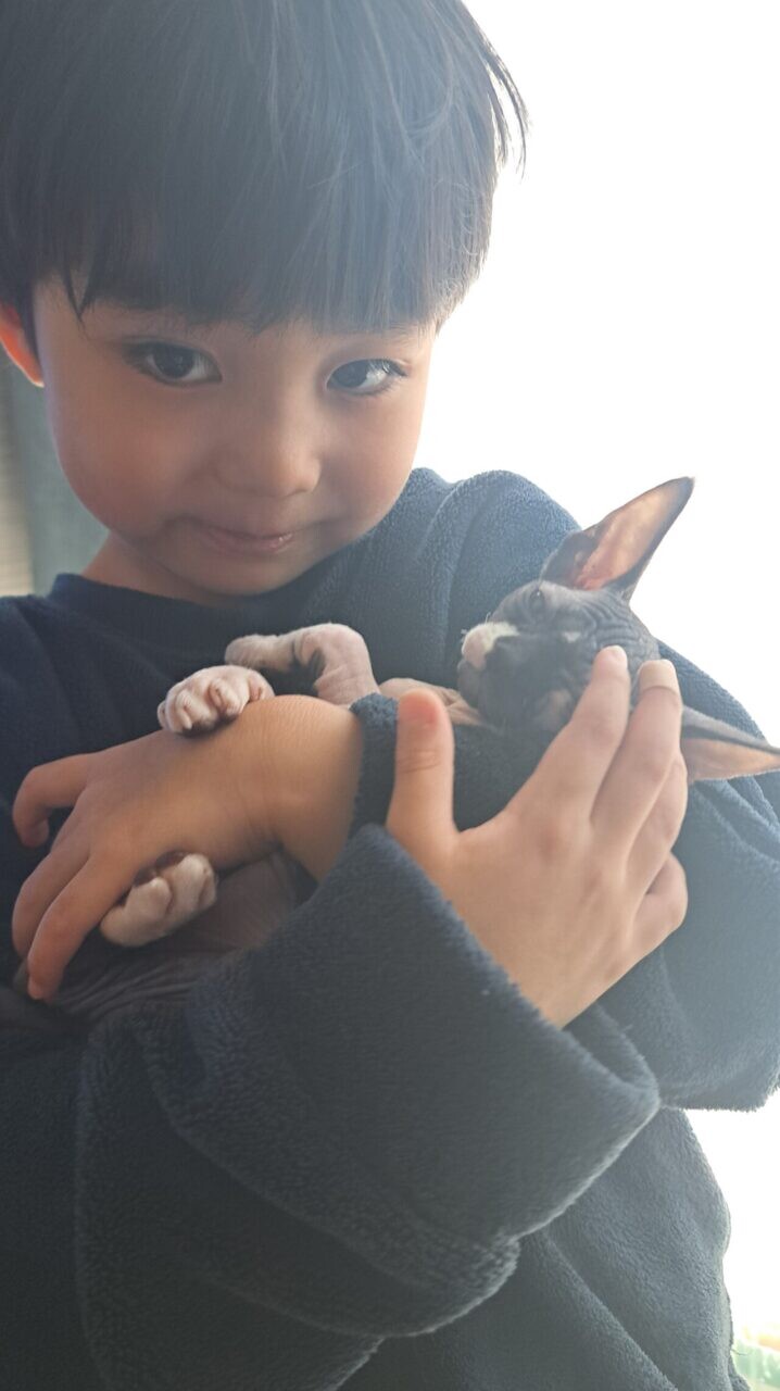 猫妖怪屋敷 新入り!スフィンクスの「火ノ子」! 猫妖怪屋敷 2026年3月5日 はじめまして!新入りの登場です! 毛のない猫、スフィンクスの火ノ子ちゃん(メス)です! まだまだ子猫です! どうぞよろしくお願いします! しわっしわです ヒゲも数ミリしかありません めっちゃ小さいです 子供達とも仲良しです。 そんな感じです。 初めて来た日の動画もあるので良かったらどうぞ↓ ではまた! こけ助パパ こけ助パパです。 僕の邪魔ばかりしてくる灰色の妖怪すずまろと、どんな食材だろうととりあえず盗む茶色い妖怪お花と、赤ちゃんに圧し掛かる白黒モフモフ毛布妖怪もちとらが住みつく妖怪屋敷で暮らしています。 関連記事 猫妖怪屋敷 サマーカット 2018年8月14日 猫妖怪屋敷 ねこナビ 猫妖怪屋敷 顔、逆さま 2019年3月25日 猫妖怪屋敷 ねこナビ 猫妖怪屋敷 ティッシュ箱にらみつぶし 2016年5月16日 猫妖怪屋敷 ねこナビ 猫妖怪屋敷 ティッシュ潰しの進化の歴史 2020年8月6日 猫妖怪屋敷 ねこナビ 猫妖怪屋敷 怖い顔シリーズ 2016年11月4日 猫妖怪屋敷 ねこナビ 猫妖怪屋敷 ティッシュは潰すだけじゃあない 2017年1月2日 猫妖怪屋敷 ねこナビ