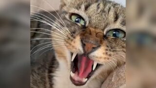猫パンチ連発で牙をむく保護猫 それでも撫で続けた結果→見せた変化に驚き
