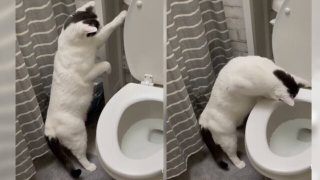 トイレの水を流す猫!? 二足立ちでレバー操作する“賢すぎる姿”に世界が騒然